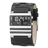 Free Standard Shipping Over $100. Original design, modern style. Fashion stainless steel case with black accents cuts away to a black digital display. Case is set against a double pad genuine leather cuff for an edgy, modern look. Buckle clasp38 mmPositive display digital movementWater resistant up to 5 ATM11-year limited warrantyImported