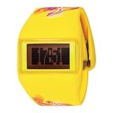 Make a statement with the eye-catching Unisex Mysterious V Series Programmable Watch from minimalist designer o.d.m. This dynamic timepiece features a stylishly contoured, yellow silicon strap that is seamlessly integrated with the case, unifying the bold look of this bangle-style watch. The rectangular dial offers a digital display that shifts from time to date with a simple shake of the wrist, and a handy EL backlight allows for easy nighttime viewing. With a scrolling screen for your own customizable message, you'll love the personal attention you get from this trendy timepiece. Fastening with a hidden fold-over clasp for an adjustable fit, this chic watch is adorned with complementing flower and petal patterns on the band for an elegant touch.