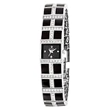 Enhance the wow factor of any cocktail dress or evening gown when you slip this timepiece on your wrist. The Bulova Women's Crystal Accented Watch boasts a metal-and-black-enamel band composed of squares separated by rows of crystals. A brass case houses a black square dial surrounded by a black brass bezel. Three silver-tone square hour indicators at the three, six, and nine o'clock positions, and a polished, silver-tone Bulova logo at the 12 o'clock position complement the silver-tone hands for a cool, polished look. The Bulova Women's Crystal Accented Watch is water resistant to 99 feet.