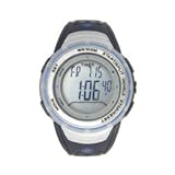 Digital quartz movement, Outdoor watch, Indiglo® night-light, Chronograph, Regular timekeeping, Customizable mode settings, 15 pre-set occasion reminders, 4 alarms, Timer, 3 Time Zones, Silver-tone acrylic bezel with black embossed letters, Silver-tone and black case, Black acrylic selector buttons with blue accents, Brushed stainless steel caseback set with four screws, 100 meters/330 feet water resistant