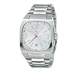 The handsomely designed Puma Men's Forcer Stainless Steel Watch has a classic, structured appearance that will suit your ever-changing needs. This timepiece features a square silver dial with silver Arabic numerals and indexes around the center of the face, and black indexes along the perimeter. Luminous hands make for quick-and-easy reference, while a date calendar is conveniently placed at the six o'clock position. A mineral window protects the dial contents, while the watch itself is water resistant to a depth of 165 feet. The square 43.7-millimeter case is constructed of stainless steel and integrated into the 22-millimeter stainless steel, bracelet-style band. The band features a simple fold over clasp with a safety clasp for a smooth appearance and feel.