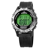 Showcasing an exciting digital compass function, the Timex Men's Digital Compass Resin Strap Expedition Watch contains everything needed to explore the great outdoors. Constructed with a lightweight resin case, the watch includes a resin bezel with compass markings and a black rubber wristband secured with an adjustable buckle clasp. A strong acrylic window shields the digital-green dial, which displays the time as well as digital compass markings in the top left and top right corners. The watch also includes four function buttons that control the mode, stop/reset, heading, and start/split features. Built with an Indiglo night-light option, 100-hour chronograph with lap and split options, 99 minute countdown timer, and daily alarm, this all-in-one timepiece is water resistant to 330 feet (100 M). It is powered by quartz movement.