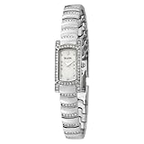 Slender and feminine, with the glitter and shine of sparkling crystals, the Women's Crystal Watch from Bulova is pure luxury on the wrist. A genuine white mother-of-pearl dial features silver-tone hands and glittering crystal hour markers, and has a delicate, elegant look that's perfect for dress wear. Boasting the precision of quartz movement, this anti-magnetic and shock-resistant timepiece combines the sleek look and durability of stainless steel with a scratch-resistant Dura-Crystal for longevity. For added peace of mind, it's also water resistant to 99 feet.