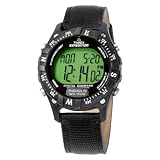 Showcasing an exciting digital compass function, the Timex Men's Digital Compass Canvas Strap Expedition Watch contains everything needed to explore the great outdoors. Constructed with a lightweight resin case, the watch includes a resin bezel with compass markings and a black canvas wristband secured with an adjustable buckle clasp. A strong acrylic window shields the digital-green dial, which displays the time as well as digital compass markings in the top left and top right corners. The watch also includes four function buttons that control the mode, stop/reset, heading, and start/split features. Built with an Indiglo night-light option, 100-hour chronograph with lap and split options, 99 minute countdown timer, and daily alarm, this all-in-one timepiece is water resistant to 330 feet (100 M). It is powered by quartz movement.