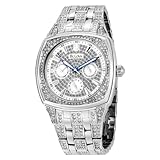 Featuring the unique, luxurious look of a case, bezel, dial, and bracelet finished in silver-tones and set with 412 Swarovski crystals, this Bulova Men's Crystal Day-Date Watch is a truly unique addition to any wardrobe. Crafted from brass for a substantial feel, this eye-catching timepiece also showcases a smooth second tracker on the outer dial, three chronograph subdials, black and white indices, a delicate second hand, and sword-shaped hour and minute hands accented in blue. Polished silver accents on the case and bracelet bring out the shine from all those crystals, while dependable Japanese quartz movement ensures precision. This brilliant dress watch is water resistant to 99 feet.
