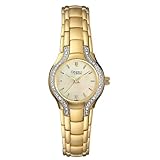 Quartz movement, Dress watch, Gold-tone hands and hour markers, Polished stainless steel gold-tone case with 12 diamonds and silver-tone accents, Polished stainless steel gold-tone crown and silver-tone caseback, Water resistant