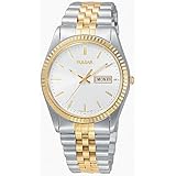 This two-tone stainless steel men's watch is the perfect blend of substance and style. The round face features a silver-tone dial with luminous hand and markers for night time visibility. The English/ Spanish calendar offers extra convenience. 30M water resistant.Matching women's watch PXX006.