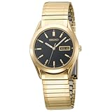 Sizing is simple and quick with this Seiko Men's gold tone expansion bracelet. Without removing links, you can adjust the length to fit wrists from 7-8 inches (average wrist is 7 1/2) . No costly mistakes or tools required. Features include black dial, day/ date display and luminous hands and markers for night-time visibility. 30 meters water resistant